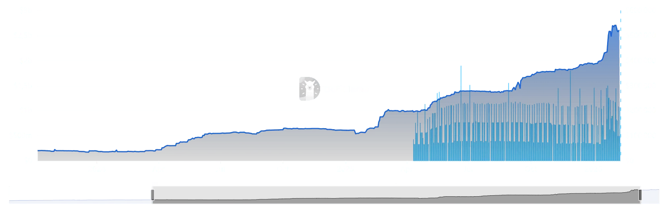 Un milliard, en soi, reste modeste à l'échelle des marchés actions mondiaux. Mais c'est la vitesse qui impressionne. En novembre 2024, ce segment pesait 9 millions de dollars. Un an plus tard, 633 millions. Aujourd'hui, 1,01 milliard une multiplication par plus de 100 en seize mois. Et la trajectoire s'accélère : +12,8% sur les 30 derniers jours, avec un volume mensuel de 2,07 milliards.