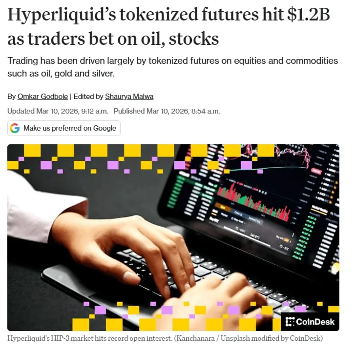 Mais ce qui distingue réellement Hyperliquid, c'est son pivot vers les actifs traditionnels.